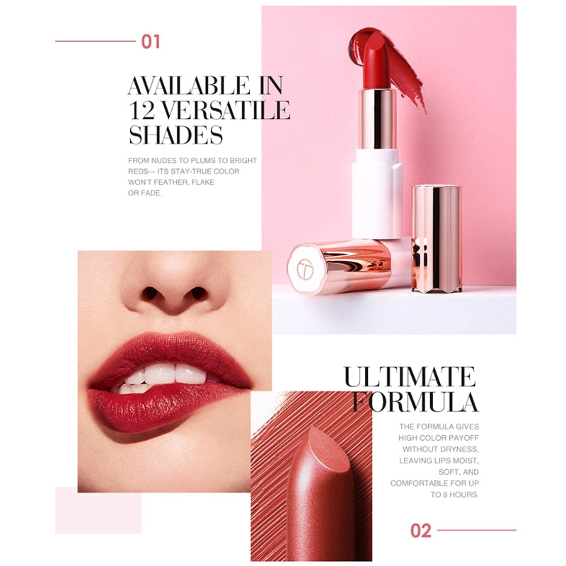 envolva seus lábios em cores ricas e acetinadas com este batom profundamente revigorante. A fórmula oferece uma alta pigmentação sem ressecamento, deixando os lábios úmidos, macios e confortáveis ??por até 8 horas;