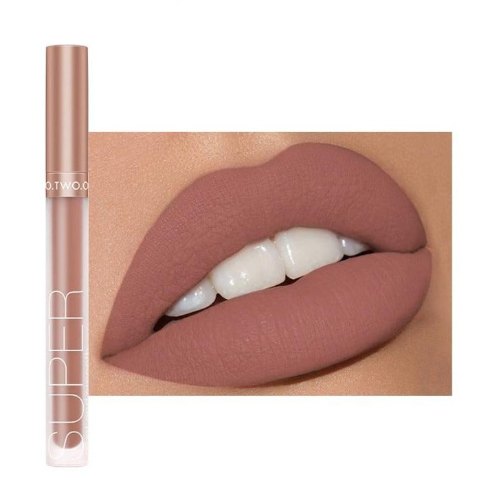 1.FÁCIL DE USAR E ALTA PIGMENTAÇÃO- Um brilho labial altamente pigmentado e duradouro com acabamento aveludado-fosco. Permite que você crie uma variedade de looks sem brilho e todo fosco.